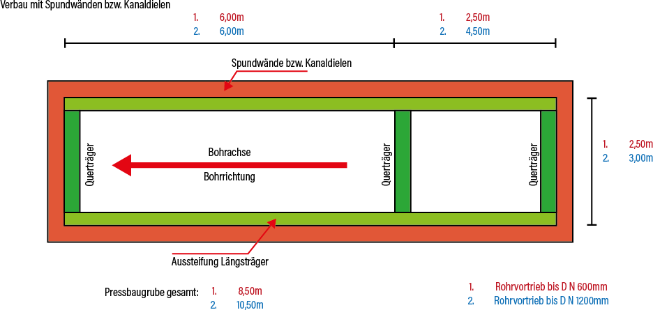 Pressbaugrube für 6m-Rohrvortrieb